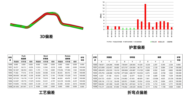 通过搭配的专业化弯管检测软件,支撑折弯点搜刮、YBC数据计较、管型编纂,可精确判断弯管参数半数弯点数据(包罗坐标和YBC)的加工误差,并出具图文并茂的检测演讲。